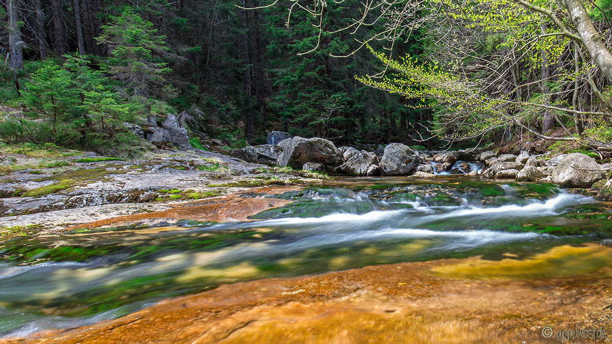 die letzten 10km von der Spindler Mühle aus ging es durch das Riesengebirge zu Fuss hoch zur Quelle, die tatsächlich noch „unter Schnee“ lag…